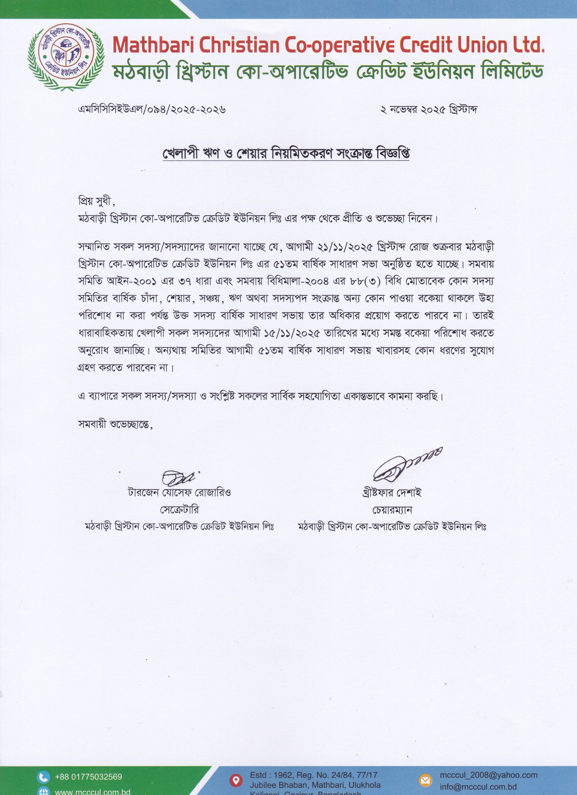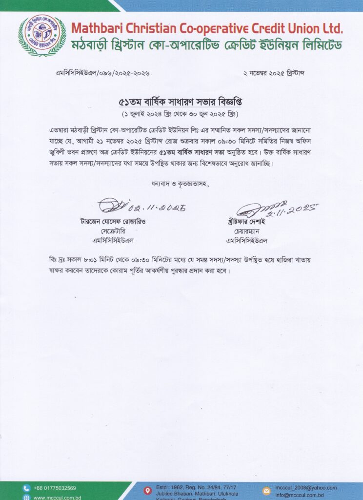৫১ তম বার্ষিক সাধারণ সভার বিজ্ঞপ্তি